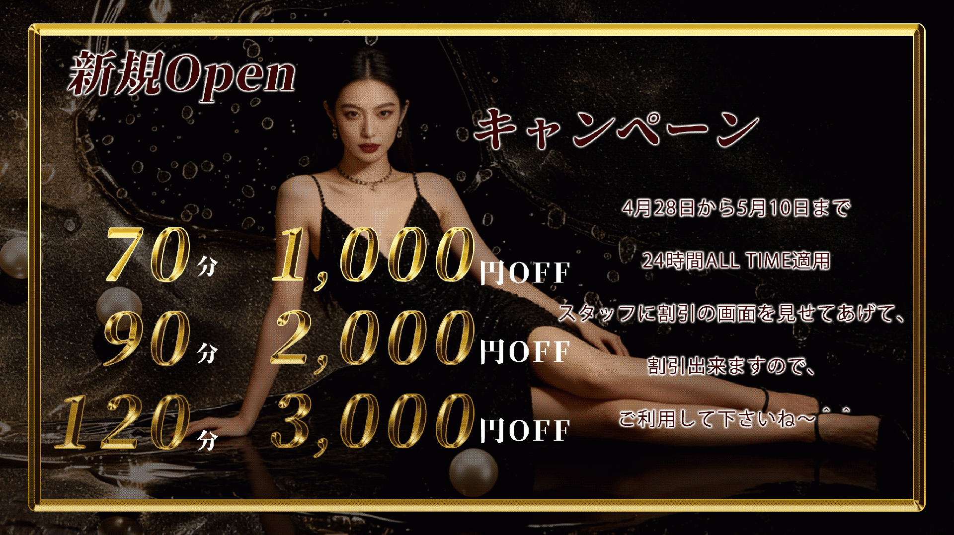 当店では、アロマオイルの効能と当店自慢のセラピストによるリンパマッサージの相乗効果による、癒しのひとときをお客様お一人お一人にお届けしております、自然で心やすらぐ優美な香りを、施術中はもちろんご帰宅お休みになってから翌日朝目覚めでまで楽しんで頂けます、どうぞゆっくりご堪能ください。